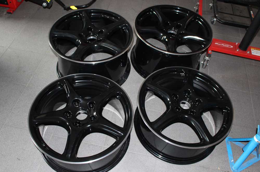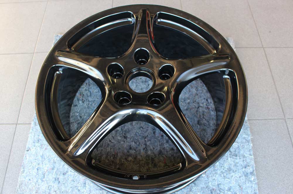 Anschließend grundiert, pulverbeschichtet und farbpulverbeschichtet. Dass diese Vorgehensweise nicht mit Euro 49,- pro Felge einhergehen kann, sollte wohl jedem klar sein … Die Ergebnisse sprechen dann aber für sich … Gerne werden polierte Ränder oder Tiefbetten mit der Pulverbeschichtung kombiniert.